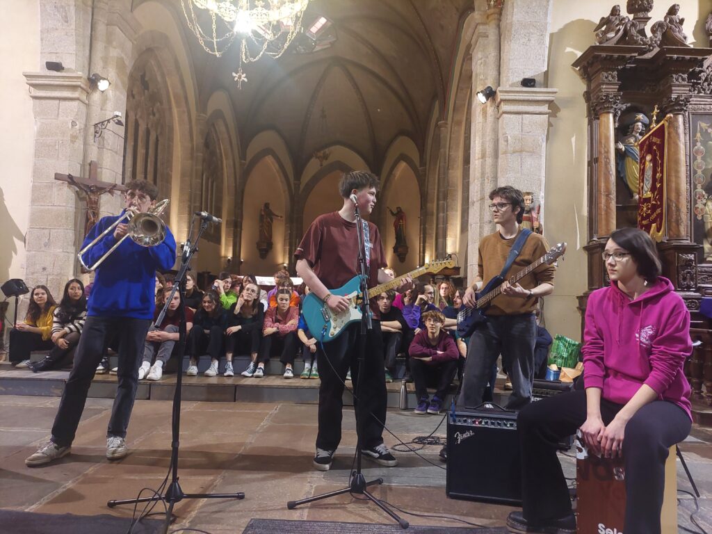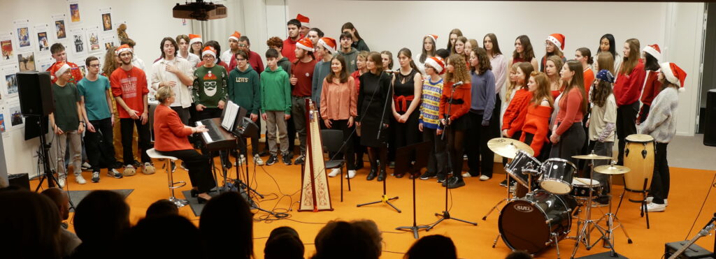 Après une 1ère partie consacrée aux collégiens (chaleureusement soutenus par les élèves de l’option musique!), double concert des lycéens (devant les collégiens, puis devant les parents) dans une ambiance chaleureuse et conviviale.