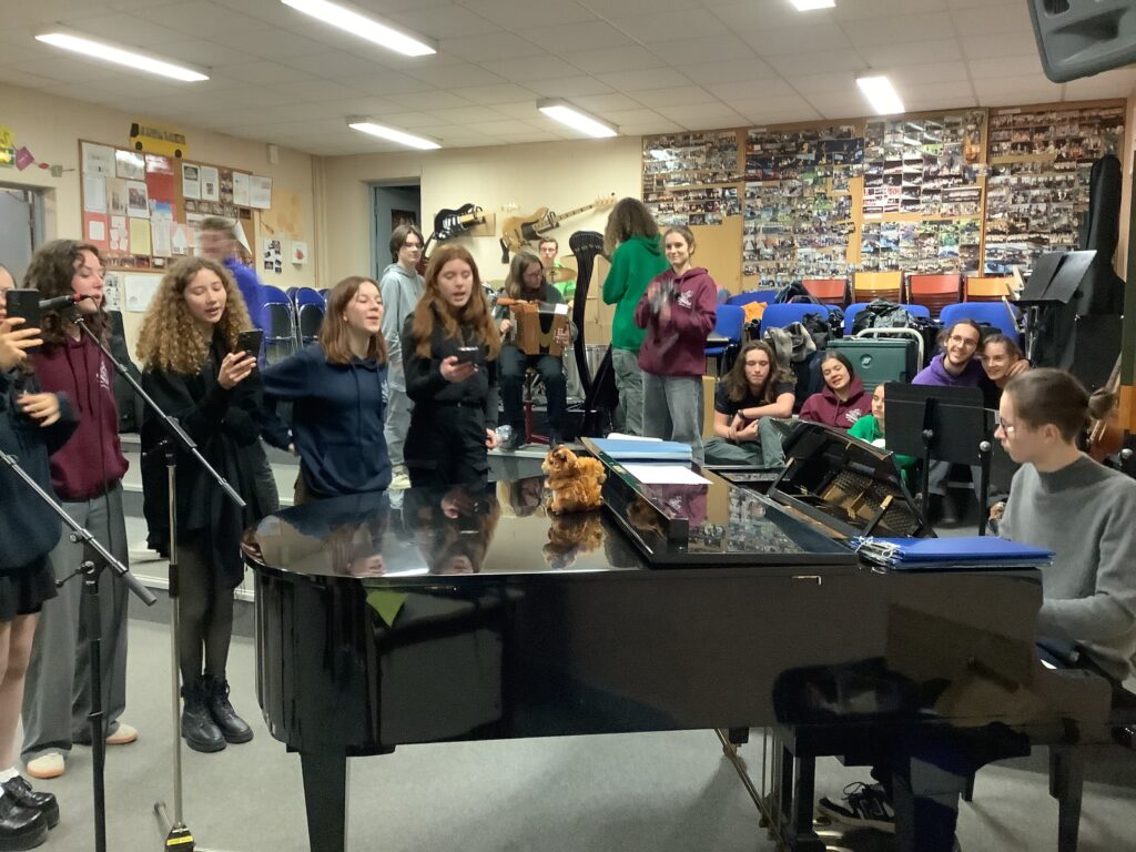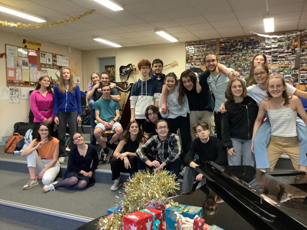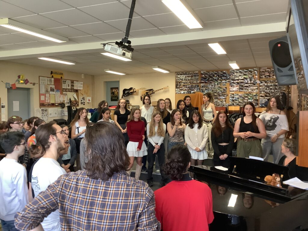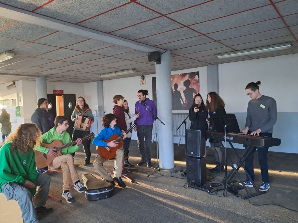 pratiques vocales & instrumentales improvisées entre élèves des différents niveaux : sdes, 1ères et terminales … mais aussi des anciens élèves revenus pour l’occasion!