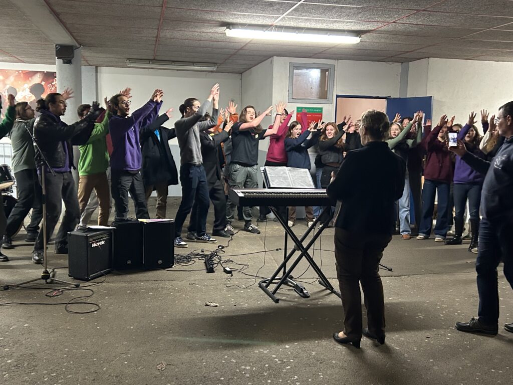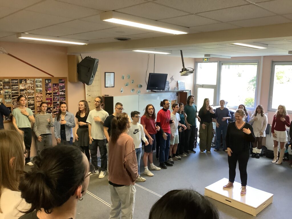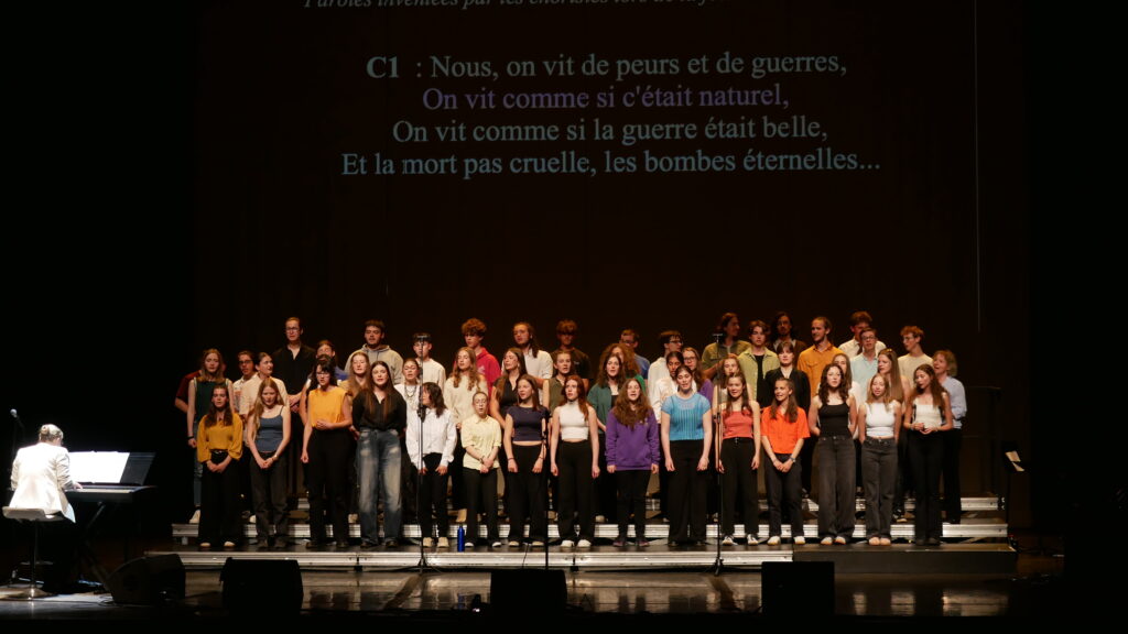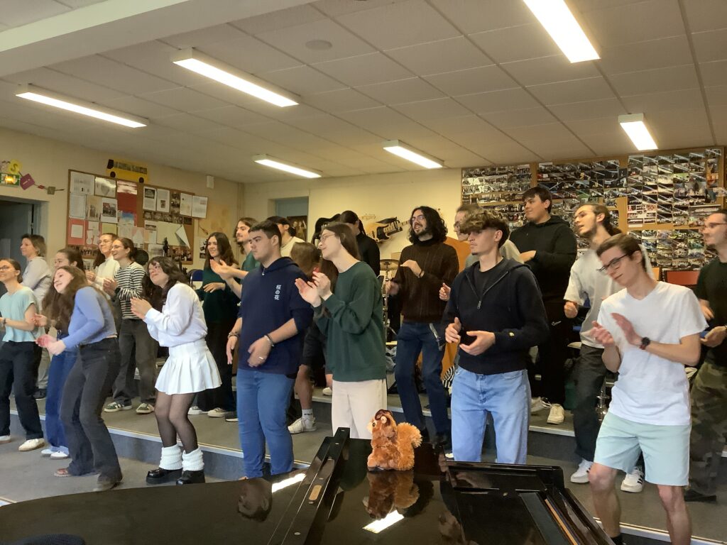 – le plaisir créatif : répartis en équipes de 10-12 choristes (tous niveaux confondus), le but pour les élèves était d’inventer des paroles sur la chanson très connue « Laissez-moi danser » (paroles centrées des causes importantes aux yeux des lycéens), puis d’interpréter et de s’approprier cette chanson en équipe.