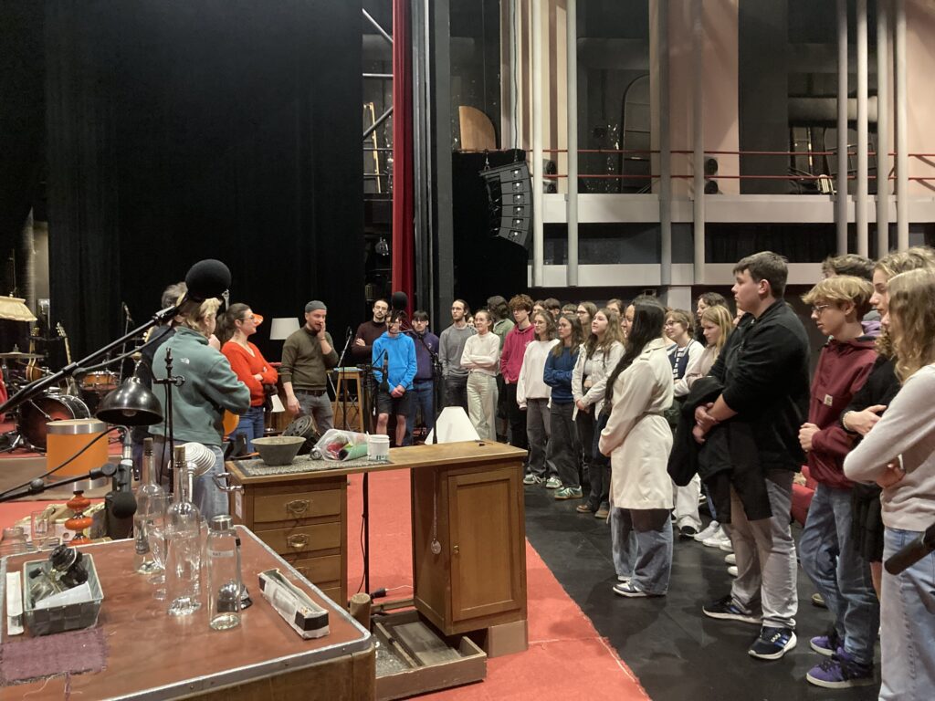 Au programme de cette rencontre : visite des installations du plateau, démonstration et essai de bruitages, échange avec les artistes sur leur parcours et leur conception du spectacle