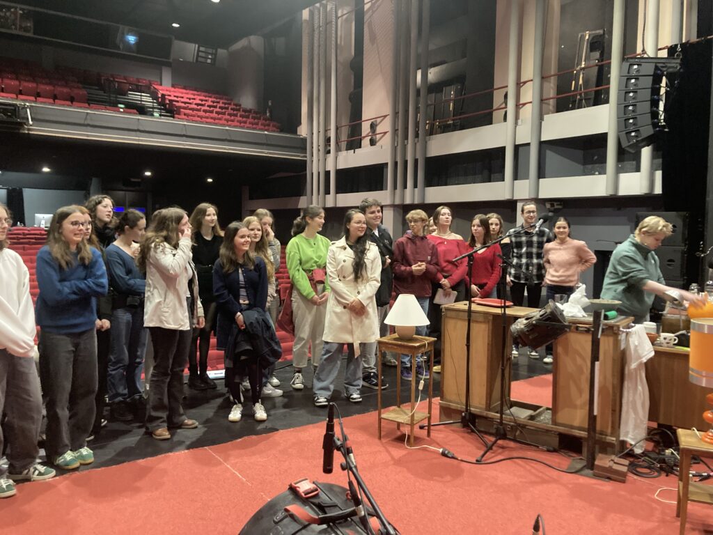 – Lily : « J’ai tout d’abord trouvé que l’accueil que nous ont réservé les artistes a été génial. Ils nous ont parlé simplement en nous intégrant sur leur plateau et nous ont fait confiance en nous permettant de tester leur matériel… ce qui est très valorisant pour nous ! Ensuite, pouvoir intégrer un plateau avec autant de décors, de détails, est une expérience unique. Et qui est d’autant plus appréciable quand on assiste au spectacle par la suite. J’avais l’impression d’être sur scène avec les acteurs, presque comme dans leur salon ! Je ne connaissais pas le domaine du bruitage mais j’ai découvert que c’était un vrai art qui demande beaucoup de précision…tout en restant un immense terrain de jeu.