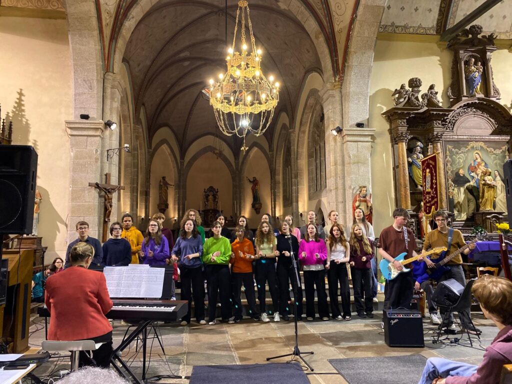 Répétition agréable et concentrée pour s’adapter à l’acoustique réverbérante de cette belle église ;