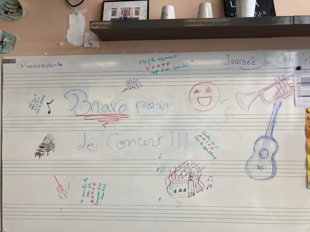 Petits mots laissés par les choristes sur le tableau de la salle de musique