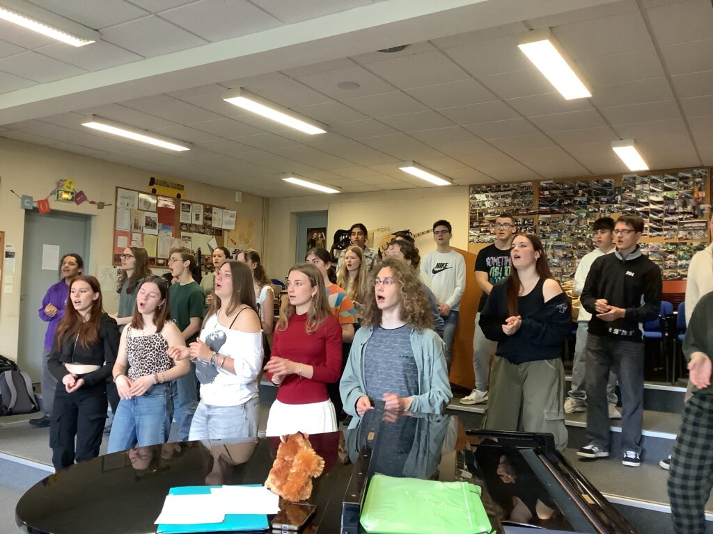 Des moments de partages collectifs avec les différents niveaux (secondes, spécialité et options facultatives), la chorale … rejointe par les anciens élèves en fin de concert