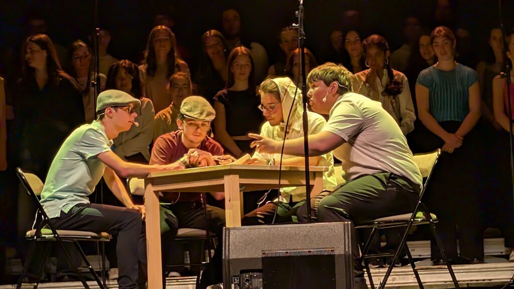 Au programme : des textes de styles très diversifiés travaillés en classe et en chorale, ponctués d’intermèdes instrumentaux chaudement encouragés par les autres élèves 🙂