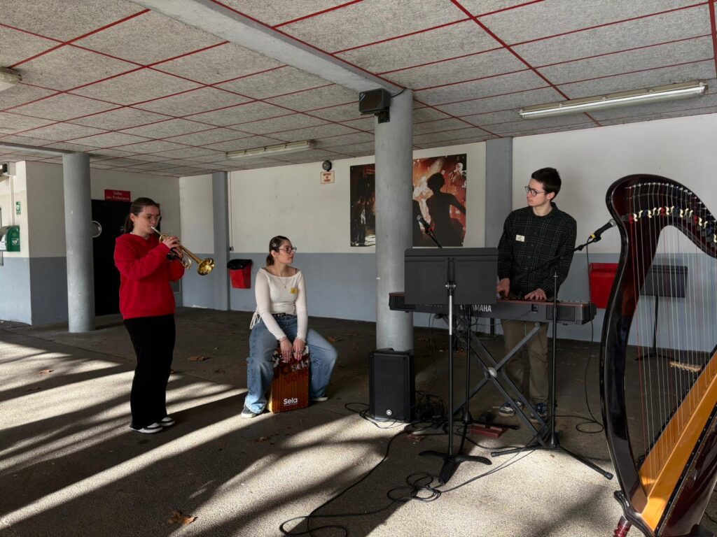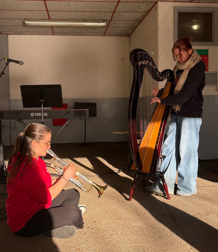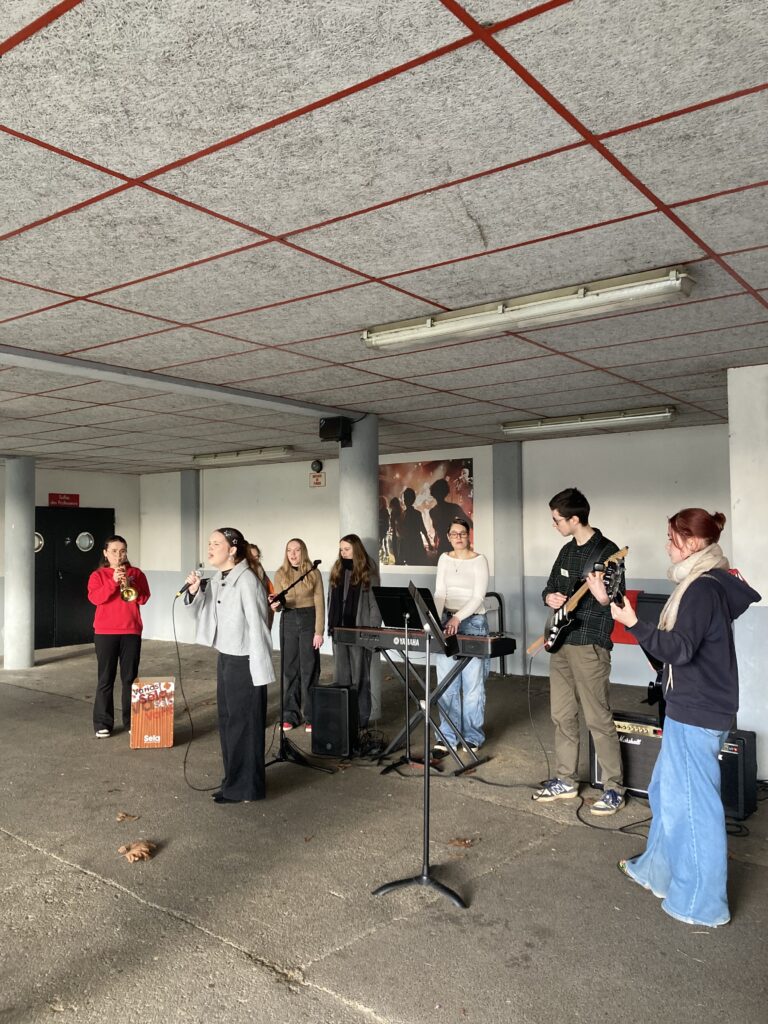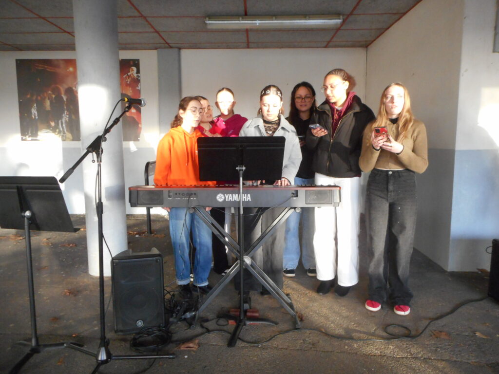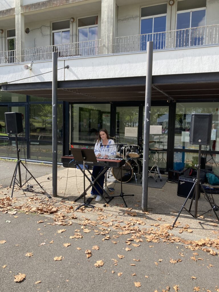 – Prestations vocales & instrumentales sous le préau avec d’anciens élèves de l’option musique venus pour l’occasion (Lisa trompettiste & Rafaël pianiste) : des très beaux moments de partage et d’improvisation intergénérationnelle !