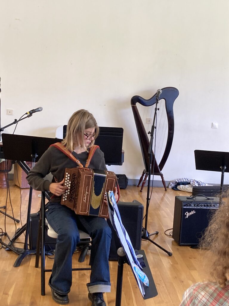 Mona 1ère : J’ai trouvé que que les groupes étaient bien composés. Mon groupe fonctionnait bien avec beaucoup d’idées et une bonne entente. Les différents temps de la journée était bien agencés. Nous avons eu le temps d’apprendre le morceau, d’inventer les paroles, de faire des crêpes et de se rencontrer entre les niveaux. Le partage de fin était vraiment sympathique. C’est toujours un plaisir de jouer ensemble et de découvrir la musique des autres.