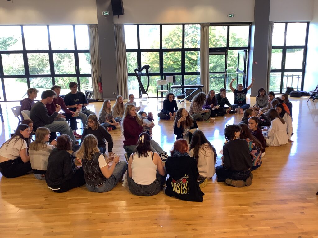 Lénaëlle 1ère : Je tenais à vous remercier pour l’organisation de cette journée de cohésion qui a été, pour moi, une expérience à la fois riche et marquante. Elle m’a permis non seulement de développer ma pratique artistique, mais aussi de découvrir et de partager de vrais moments humains avec mes camarades. J’ai particulièrement apprécié le travail avec la chorale, ainsi que l’exercice de recréation des paroles en petits groupes. Cela nous a poussés à collaborer, à être créatifs et à découvrir les talents de chacun dans une ambiance à la fois conviviale et stimulante. La mise en commun des productions m’a également beaucoup plu : c’était un moment de partage sincère où chacun pouvait montrer le fruit de son travail et s’enrichir des propositions des autres. Le temps de partage musical, en particulier, restera un très beau souvenir. J’ai eu l’occasion de chanter ma propre chanson devant tout le monde, ce qui a été un vrai plaisir personnel (…) Recevoir les applaudissements et les retours bienveillants des autres m’a beaucoup touchée et motivée. J’ai aussi pris énormément de plaisir à écouter ce que les autres avaient préparé : chaque prestation apportait une sensibilité différente, et cela rendait le moment vraiment fort et unique.