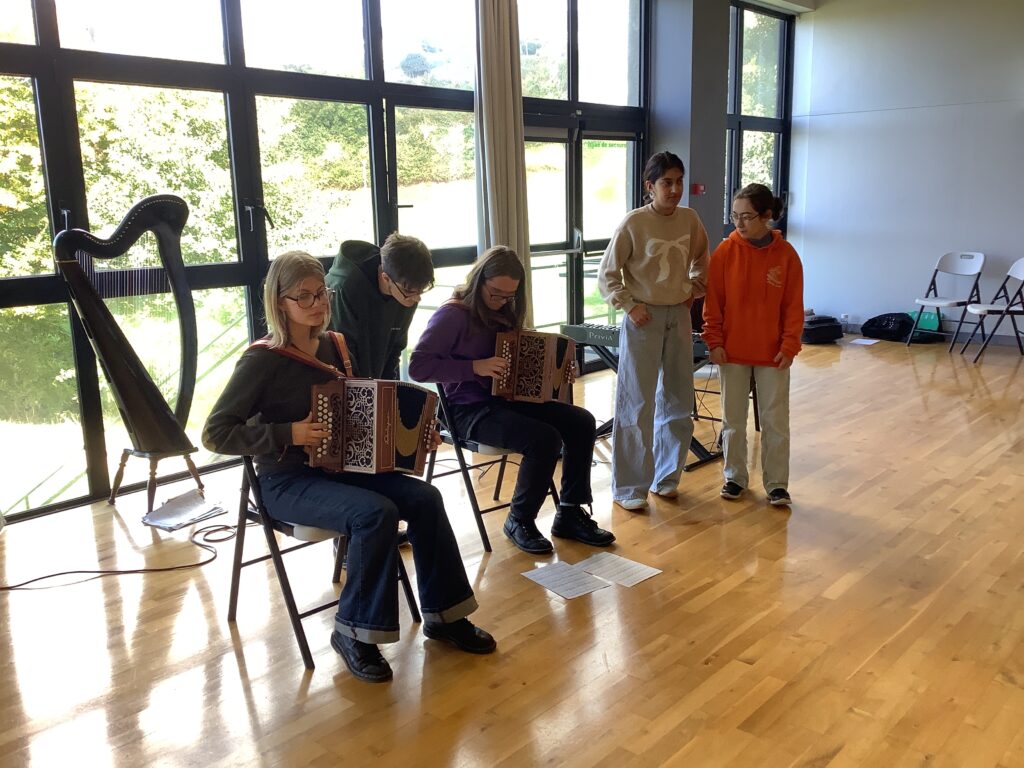 Eva 1ère : J’ai adoré le moment où nous avons composé les paroles, trouvé les notes et les accords au piano sur « Laissons entrer le soleil » ! J’ai aussi apprécié le moment où l’on a fait de la danse bretonne sans oublier le partage musical qui était indispensable pour terminer la journée ! J’ai remarqué un crescendo au niveau l’ambiance : le matin, c’était calme et on ne se connaissait pas tous et l’après-midi, après avoir joué, chanté ensemble, on s’est rapproché laissant place à une ambiance vivante où chacun a sa place ! Une preuve d’une journée de cohésion réussie !