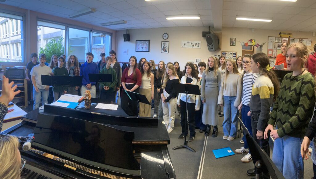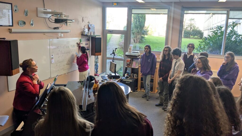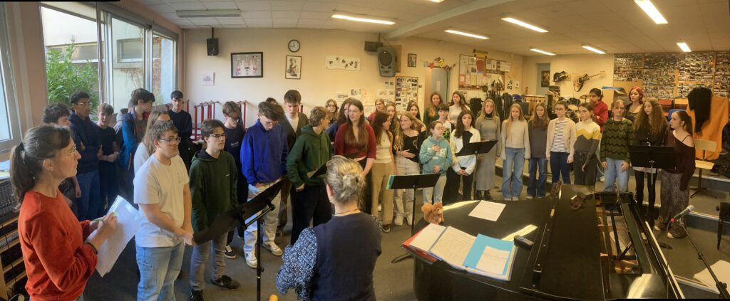 Moments de partage en classe et en chorale dans la salle de musique décorée pour l’occasion 🙂
