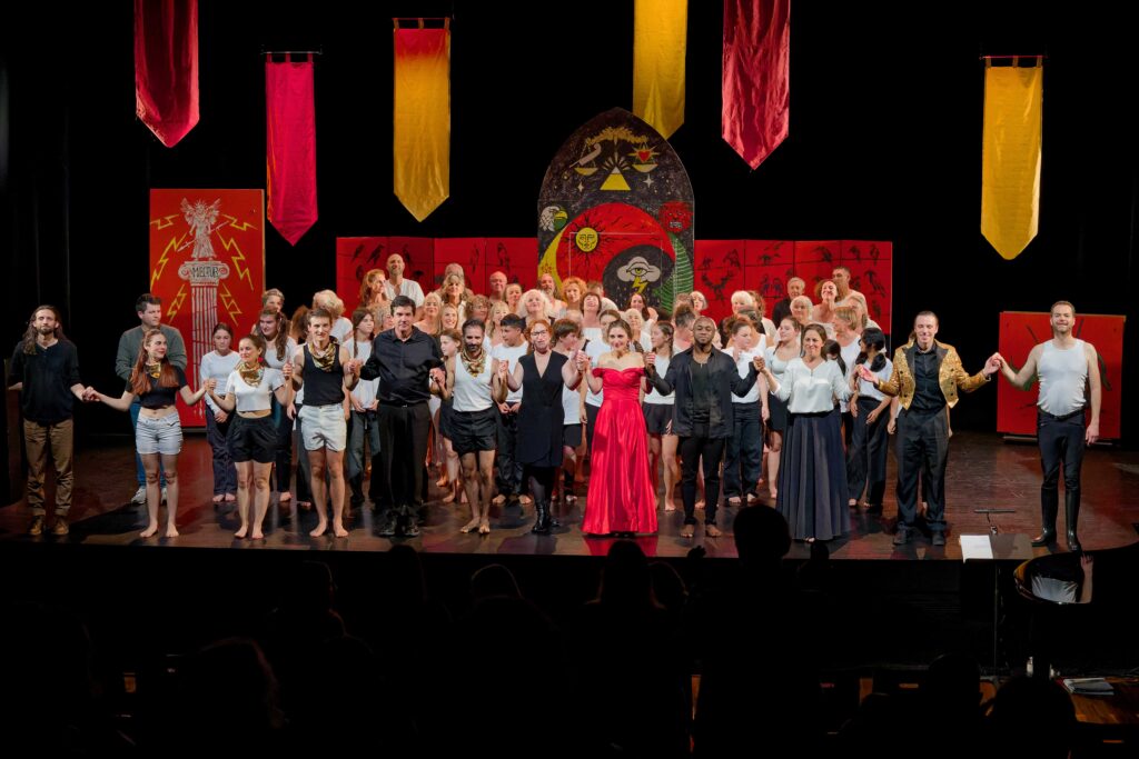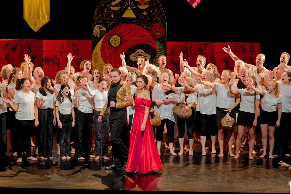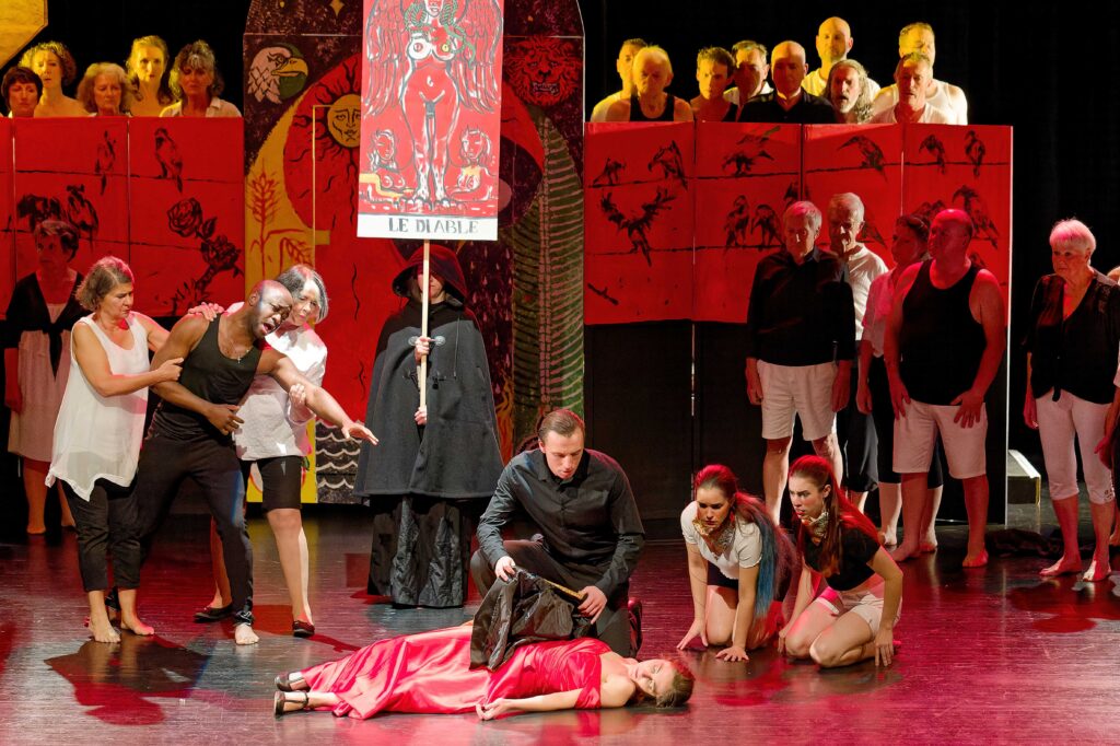 Pour les personnages qui remplissaient jouaient le rôle de la foule, c’était assez difficile de deviner : bénévoles ou professionnels ? Quel plaisir de regarder chacun d’eux ! Les chanteurs-acteurs professionnels étaient d’un niveau tel qu’on aurait dit des étoiles internationales, tant tout était précis, maîtrisé, et parfaitement incarné. Le choix des interprètes était incroyable : on aurait cru qu’ils étaient nés pour leurs rôles. Le décor m’a profondément marquée : les cartes de tarot, les différents panneaux selon les actes, toute cette symbolique profonde pensée avec tant de justesse (…) Merci pour cette interprétation magistrale d’un classique mondial et pour avoir ravivé un vrai sentiment d’admiration pour cette œuvre. »