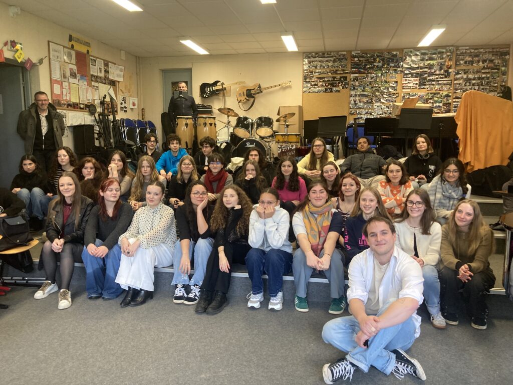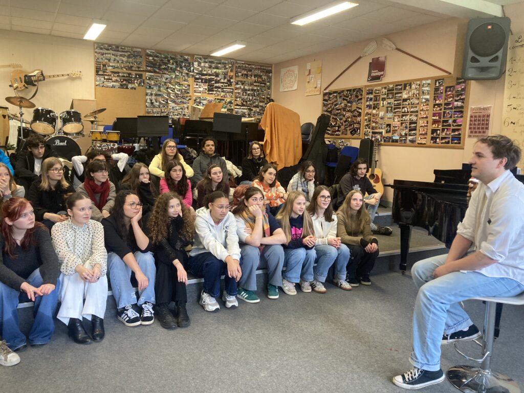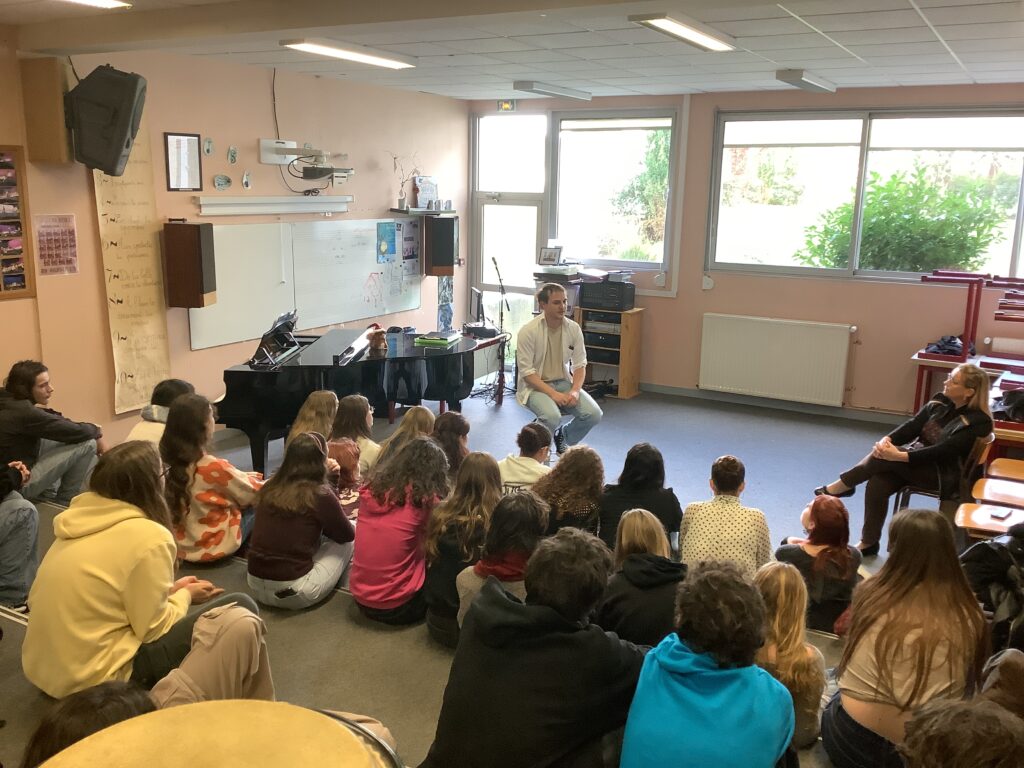 Au programme de cet échange riche en émotions : partage de son parcours et expérience de musicien professionnel, suivi d’un moment de jeu improvisé avec 3 élèves de spécialité Musique.
