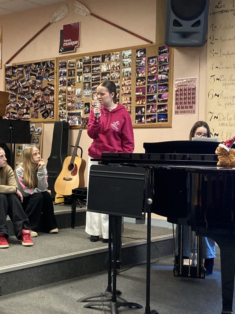 Lénaëlle : Les répétitions pour le concert ont été intenses, mais incroyablement enrichissantes ; il y avait une vraie énergie, une envie de bien faire, mais aussi beaucoup de plaisir à être ensemble. Et puis il y a eu le concert… C’était un moment vraiment fort, et monter sur scène, chanter, ressentir le groupe, le public : c’était magique ! Mais j’ai surtout ressenti une grande fierté : celle d’avoir construit quelque chose ensemble, jusqu’au bout. Cette sensation d’un travail accompli, partagé avec les autres, m’a vraiment marquée.