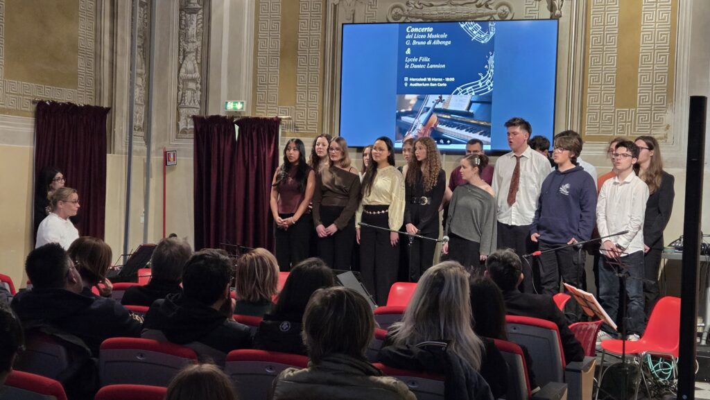 Ewen I : Les répétitions avec les musiciens italiens ont été géniales : chanter avec eux et partager nos chants nous a unis (…) Le concert était juste magnifique, avec beaucoup de joie et d’émotions. J’ai ressenti beaucoup de frissons lorsque nous chantions avec eux.